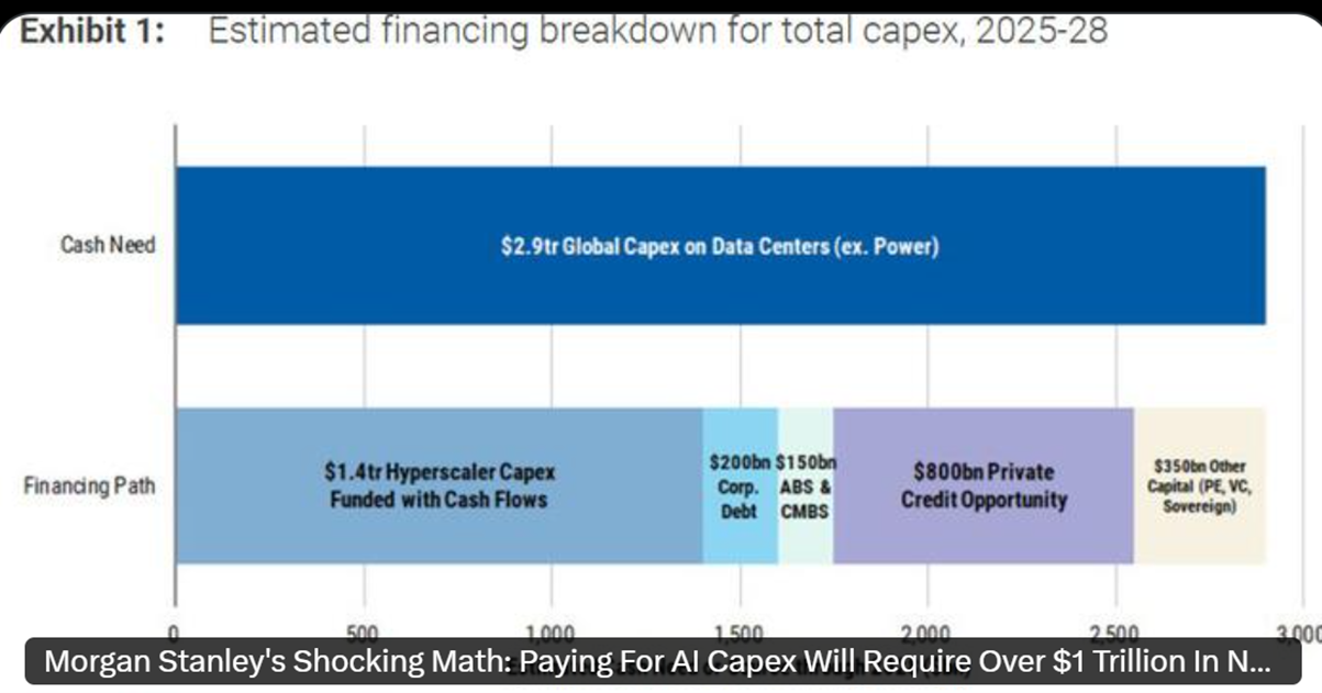 Og til forskel fra hidtil, så er vi nu oppe i så store beløb, at de ellers meget profitable techgiganter ikke længere kan finansiere investeringerne selv, men skal ud og låne dem på finansmarkederne, bl.a. det hastigt voksende private credit marked (lånemarked uden om børsmarkederne lige som private equity på aktiesiden).