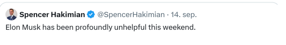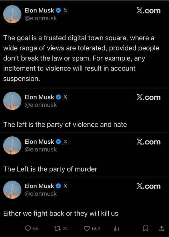 Desværre er der magtfulde typer som Elon Musk og Donald Trump som ingen interesse har i at dæmpe de politiske gemytter, tværtimod smider de benzin på det politiske bål: