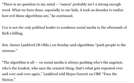 I de her Charlie Kirk-dage giver det en interessant politisk dynamik i USA: Flere republikanske kongres-medlemmer forbander sociale medier for at radikalisere unge amerikanere og vil have mere regulering, hvilket går imod Trump og partiets fokus på retten til ”free speech”, og bringer dem – som jeg læser dem - mere på linie med holdningen i EU.