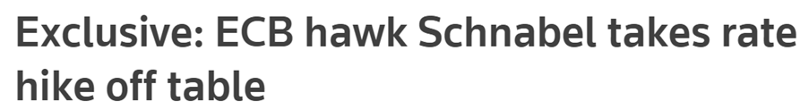 ECB-medlem Isabel Schnabel startede festen da hun i et interview overraskende indrømmede, at inflationen i Eurozonen er faldet hurtigere end hun har ventet. Truslen om yderligere renteforhøjelser bør derfor tages af bordet og renterne endda sænkes i 2024 sagde hun.
