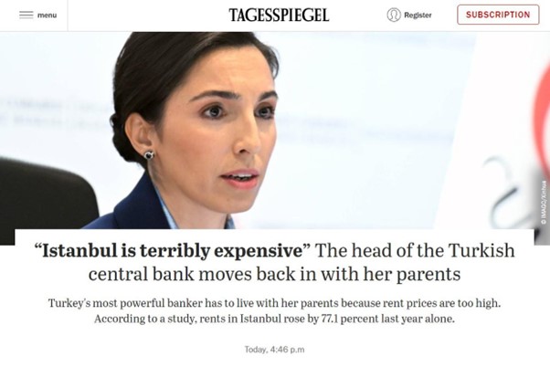Istanbul er ingen undtagelse fra denne trend og deres i forvejen høje inflation giver den lige lidt ekstra skub med huslejestigninger på 77% det seneste år, så selv den 44 årige centralbankchef Hafize Gaye Erkan er nødt til at flytte hjem til mor og far.