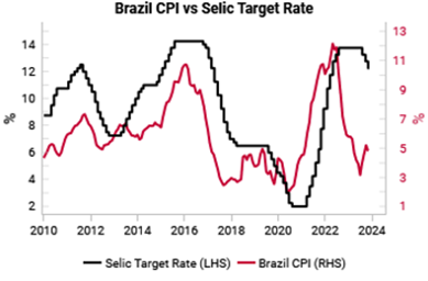 Nogle spændende markeder lige nu er bl.a. Latinamerikanske aktier og obligationer (langsigtet værdi, se fx. den lækre høje realrente på Brasilien nedenfor), Frontier Markets (langsigtet værdi) og ædelmetaller (guld, sølv, platin, beskyttelse mod uro og volatil inflation).