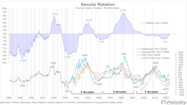 Justin Timmer fra finansgiganten Fidelity og finanshuset Richard Bernstein Advisors mener centralbankernes mere afslappede holdning på et tidspunkt, hvor inflationen ikke er helt under kontrol, kan sætte gang i tre rotationer, der også har præget aktiemarkedet de seneste år, men som er gået i stå igen og igen og efterladt markedet med tre store ekstreme forskelle i prisfastsættelse:
