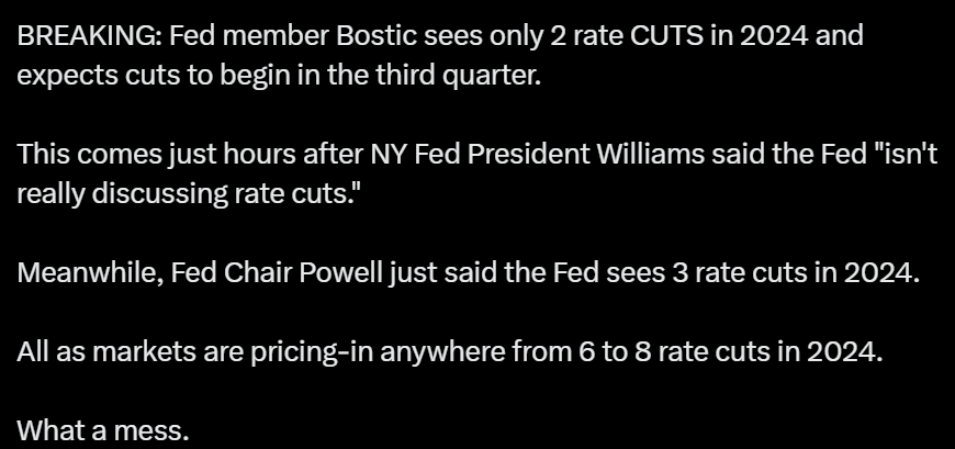 Schnabel er en af mest konservative/høgeagtige ECB-medlemmer, så udtalelserne satte hurtigt gang i spekulationerne om masser af rentesænkninger i 2024 og det smittede lynhurtigt positivt af på obligationsmarkedet og derfra kredit- og aktiemarkederne.
