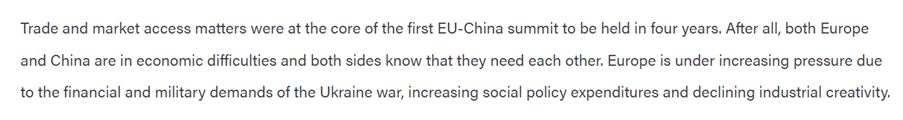 Der kom tilsyneladende ikke noget konkret ud af handelsdiskussionen. Risikoen for at der opstår mere ballade mellem Kina og EU er derfor til stede, men vurderes af flere eksperter ikke som stor, da begge parter lige nu har brug for hinanden pga. mangel på økonomisk vækst.