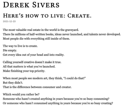 Og så lidt små-filosofi til en afslutning, men især de sidste to linier er vigtige at tænke over i en tid med uendelige underholdningsmuligheder lige ved fingerspidserne: