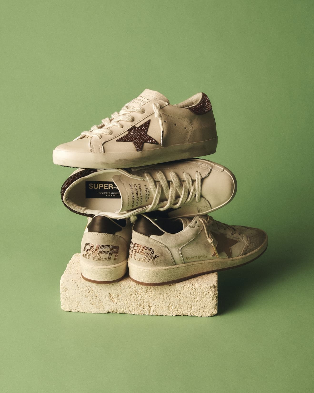 ESTA NUEVA COLECCIÓN GOLDEN GOOSE reinventa el estilo casual con una narrativa auténtica y emocional: sneakers que parecen vivir una historia, adornados con texturas trabajadas que reflejan libertad y sofisticación boho.
