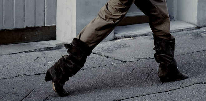 Accesorios con carácter: prendas complementadas por botas cowboy con detalles metálicos y bermudas-pantalón con hebillas estructuradas que refuerzan el carácter bohemio renovado de la marca