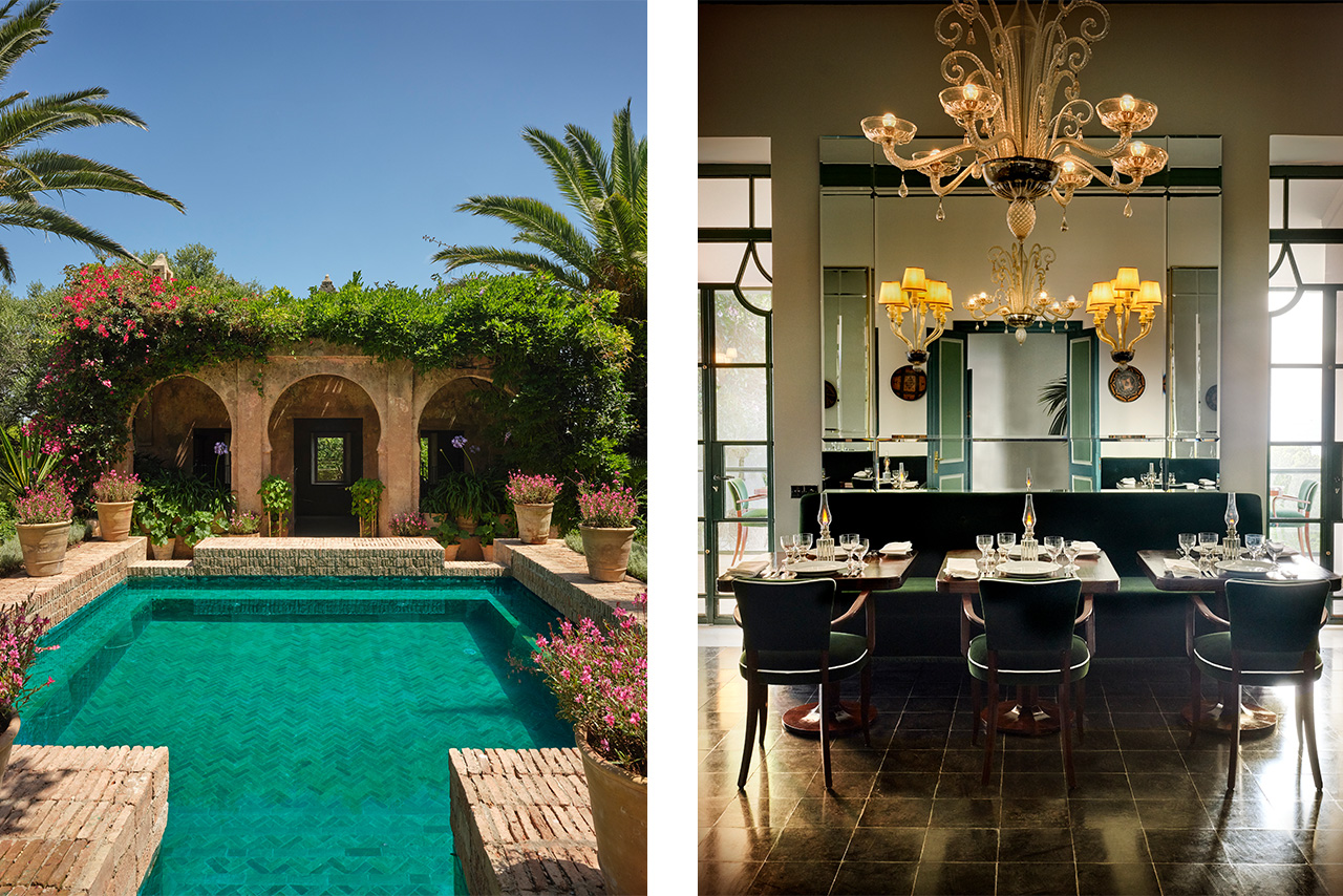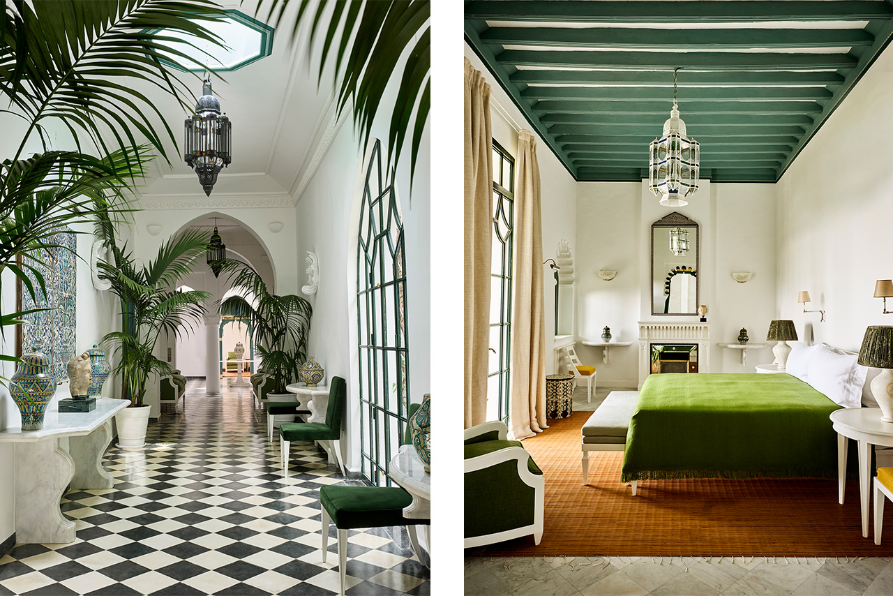 Perched just outside the kasbah and gazing over the Strait of Gibraltar, the 1940s property became the couple’s summer refuge after they bought it in the 1990s. “Saint Laurent wanted Villa Mabrouka to echo the elegance of his childhood home in Algeria,” says British designer and hotelier Jasper Conran, who acquired the house after the couturier’s death and has spent years restoring it as a 12-key hotel. “It is glamorous in its purity and simplicity – a Mediterranean house with the gentle nuances of Morocco.”