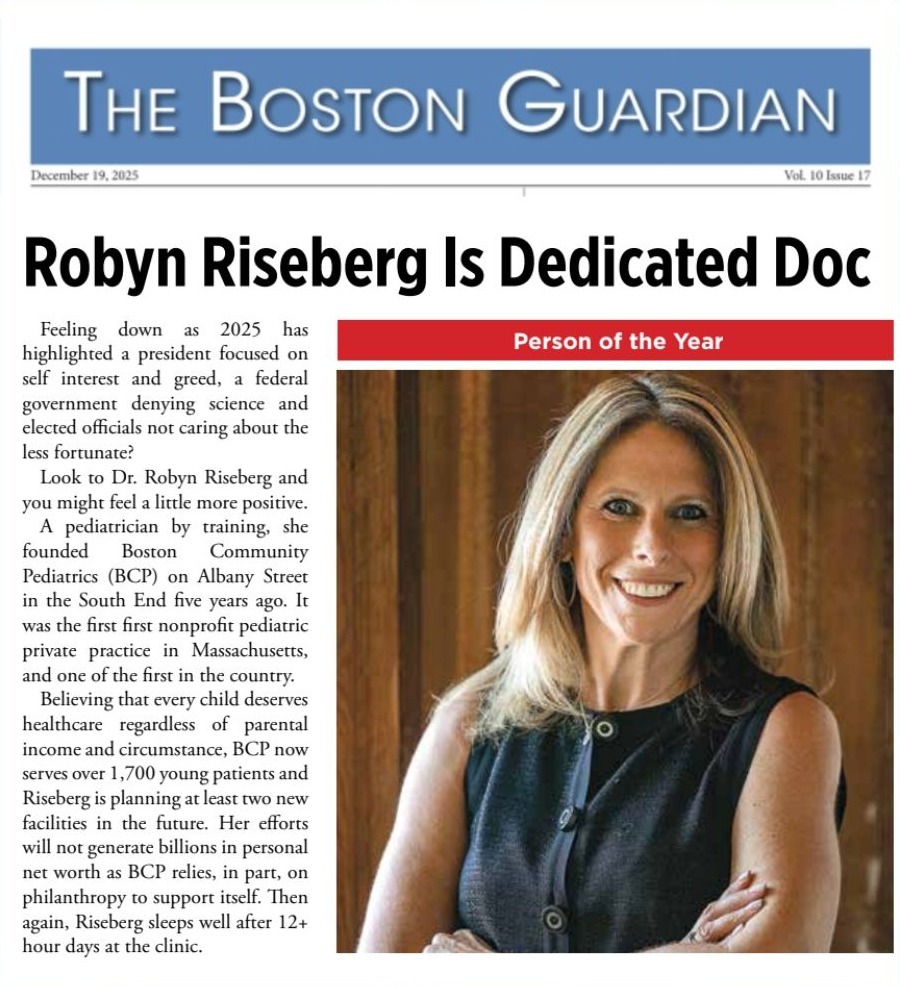 BCP continued to drive change by demonstrating the undeniable impact of its health equity model. This year, BCP was regularly featured in the news, including NBC, The Boston Globe, CBS, and more. Additionally, BCP Founder Dr. Robyn Riseberg shared BCP’s integrated care model, including as a speaker at the 2025 BIO International Convention and at Boston Children’s Hospital’s panel discussion on the importance of integrated behavioral health. Most recently, Dr. Riseberg was selected as The Boston Guardian's 2025 Person of the Year and a 2026 Pinnacle Awardee for Achievement in Health Care. See all BCP’s news appearances here.
