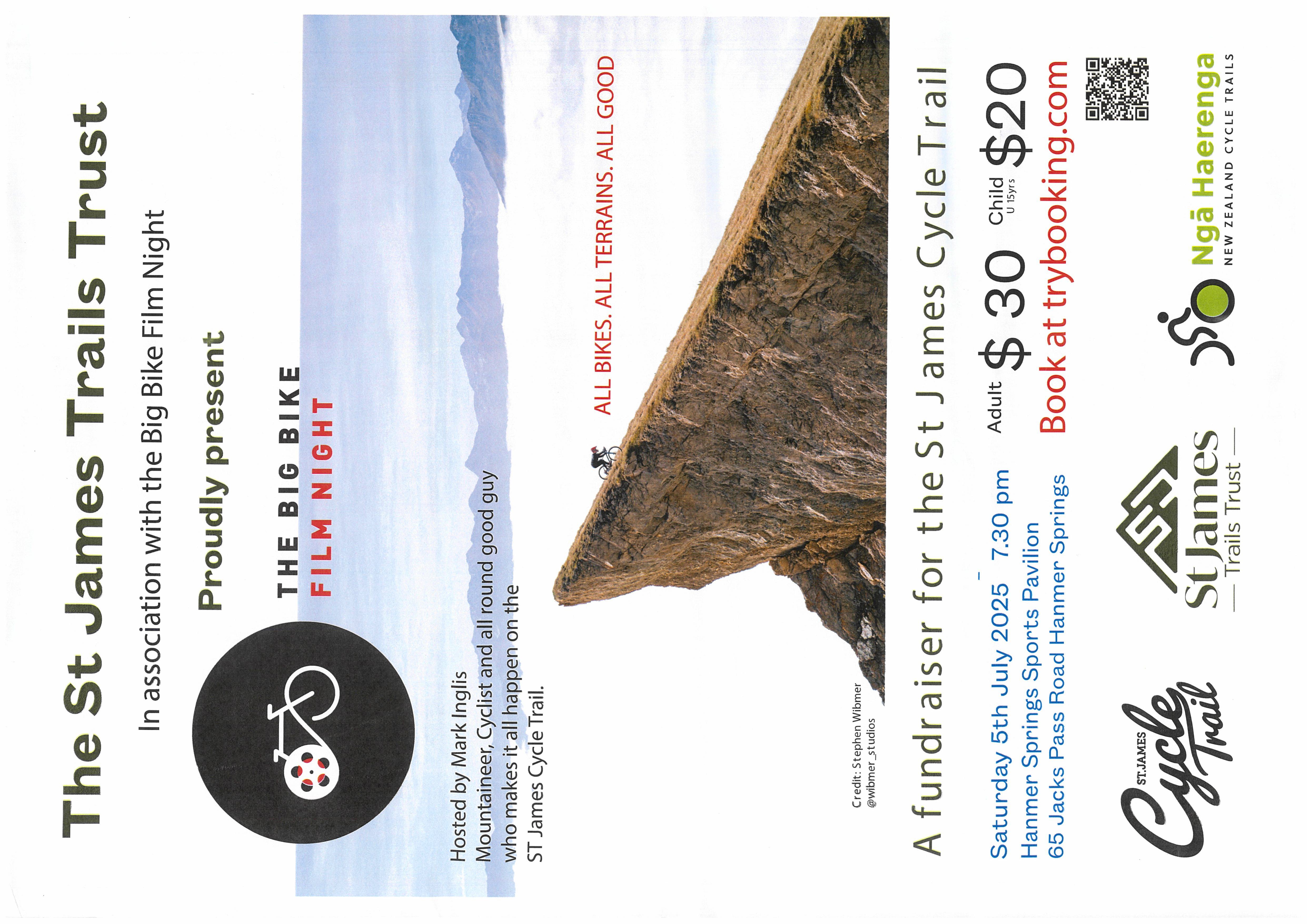 The Big Bike Film Night is coming to Hanmer Springs in a couple of weeks time. Ticket proceeds are going to the St James Trails Trust so be sure to check it out on 5th July- all the details are below!