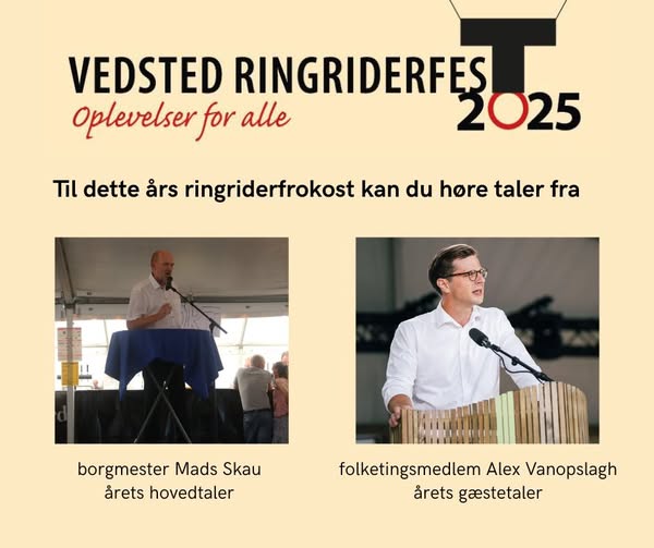 Entré: 408 kr. Bestil billetten her . Sidste frist for tilmelding 5. august Arrangør: Vedsted Ringriderforening