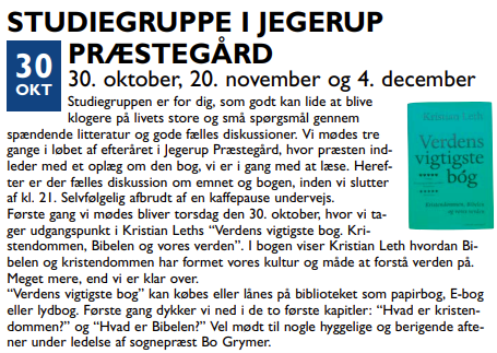 Vil du blive klogere på teologiske emner, så kom og vær med til denne række af teologiske foredrag. Man kan deltage i alle, eller komme til udvalgte foredrag. Foredragene er ved kirkens præster og foredragsholdere udefra.