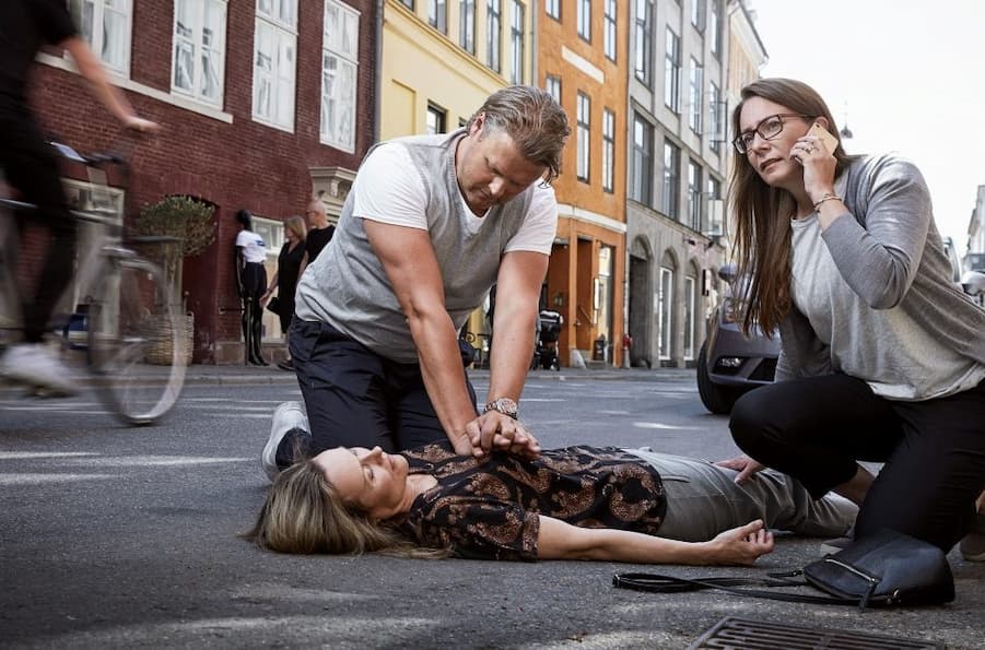 Program: Du lærer at: 1. undersøge en person for unormal vejrtrækning – 2.Hvornår du ringer 1.1.2 – 3. hvordan du giver kunstigt åndedræt, 4 hvordan du laver indblæsninger, – 5 hvordan du bruger en hjertestarter