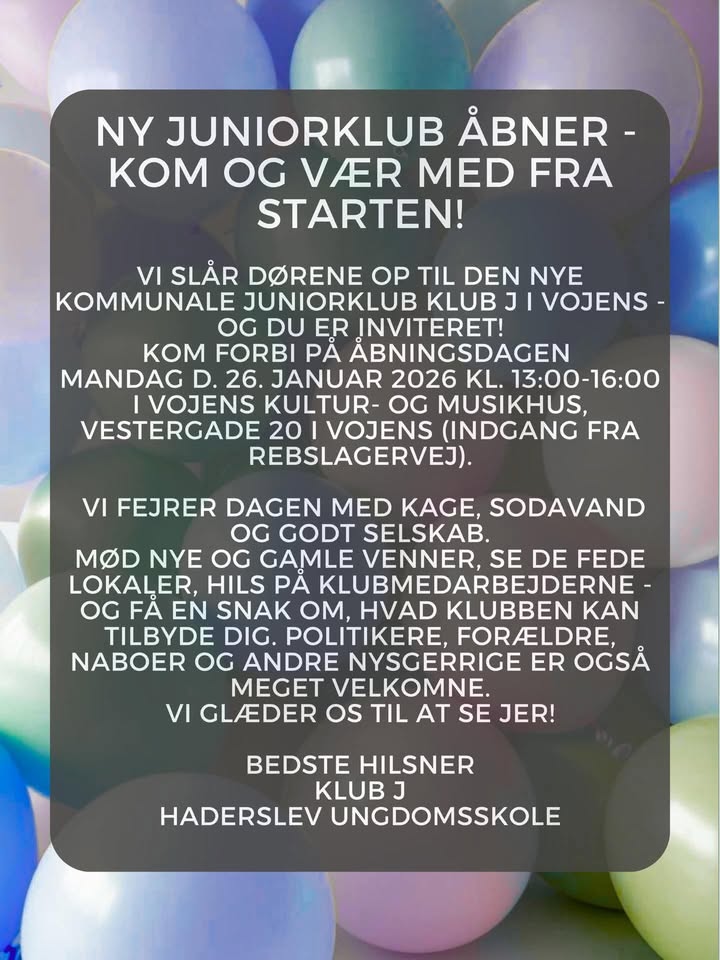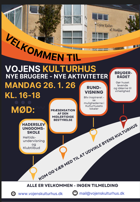 Tid: Mandag den 26. januar 2026 kl. 13-16 Sted: Klub J, Vojens Kultur- og Musikhus, Vestergade 20 (brug indgangen fra Rebslagervej), 6500 Vojens